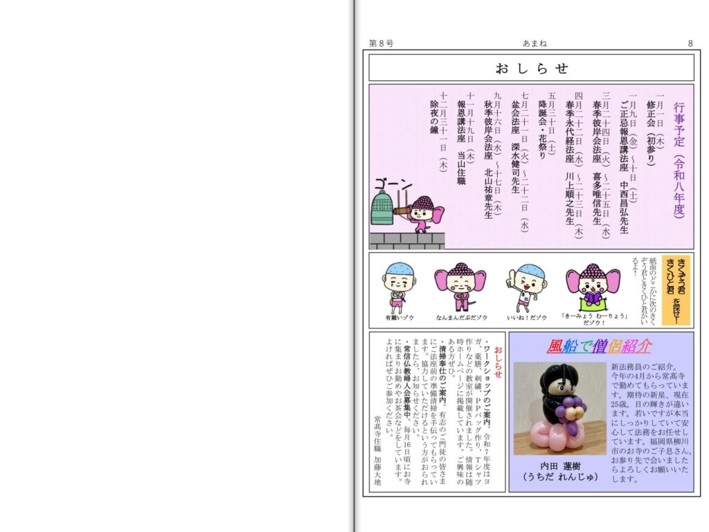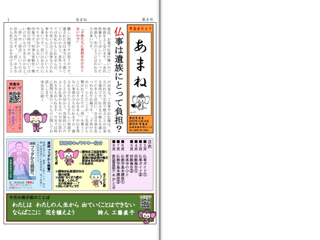 常髙寺の寺報誌『あまね』の第8号が出来ました。