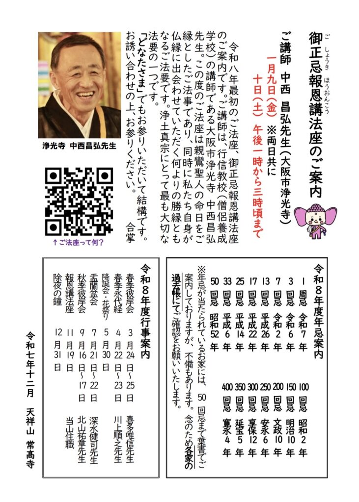 御正忌報恩講法座のご案内