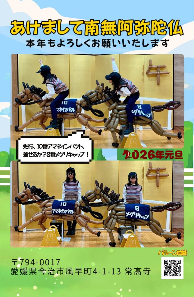 毎年お寺の年賀状作成の際、裏面に風船作品を載せています。